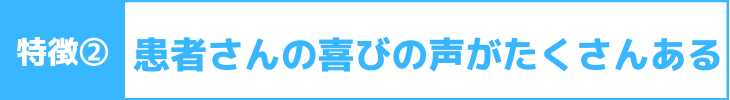 ありがたいことに当院で施術を受けた方喜びの声をたくさん頂いています。 その中にはあなたの症状と同じ人の体験談もあるでしょう。ぜひ参考にしてみてください。 患者さんとの信頼関係、本当にありがたいことです。 |