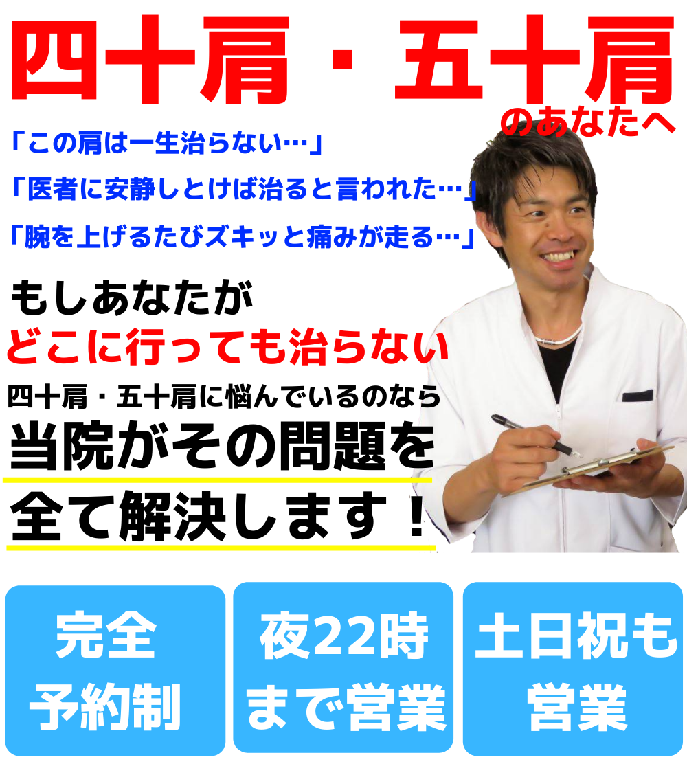 あなたの四十肩・五十肩が改善しないのは誤った施術を続けているからなのです!